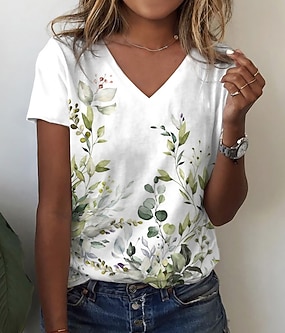 نسائي تي شيرت ورد الزهور أساسي كم قصير V رقبة قمصان عادية فضفاض مناسب للعطلات عطلة نهاية الاسبوع طباعة أزرق أرجواني أخضر