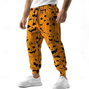 Halloween رجالي قرع كوستيوم هالوين بنطلونات عداء ببطء خصر متوسط خصر مطاطي برباط الطراز القوطي الداكن مناسب للعطلات ملابس الشارع بنطال رياضي مع جيوب الربيع الخريف طباعة ثلاثية الأبعاد أزرق برتقالي