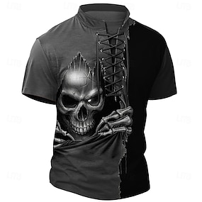 Halloween رجالي شبح الموت حصادة قميص هينلي تي شيرت تي كم قصير تي شيرت طباعة ثلاثية الأبعاد رقبة عالية مدورة مرتفعة ربط الحذاء حتى الرقبة قميص كاجوال شارع رياضة في الهواء الطلق فضفاض أسود أزرق بني