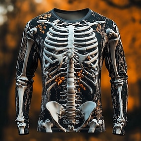 Halloween رجالي 3D هيكل عظمي تي شيرت كم طويل تي شيرت طباعة ثلاثية الأبعاد رقبة عالية مدورة قميص موضة مبالغ فيه شارع فضفاض مناسب للبس اليومي أسود الصيف الربيع الخريف ملابس S M L XL XXL XXXL
