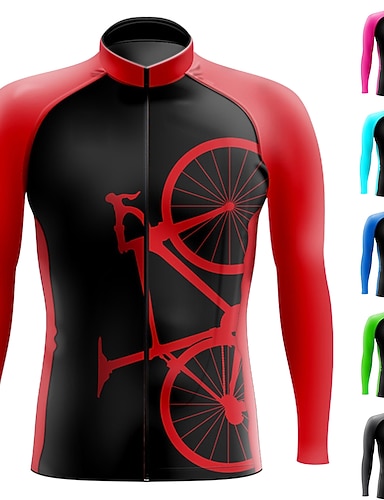 رجالي جورسيه الدراجة الرسم مضحك كم طويل الدراجة جورسيه قمم مع 3 جيوب خلفية دراجة جبلية دراجة الطريق سريع جاف شرائط عاكسة الجيب الخلفي رطوبة فتل رياضات أسود زهري أحمر ملابس