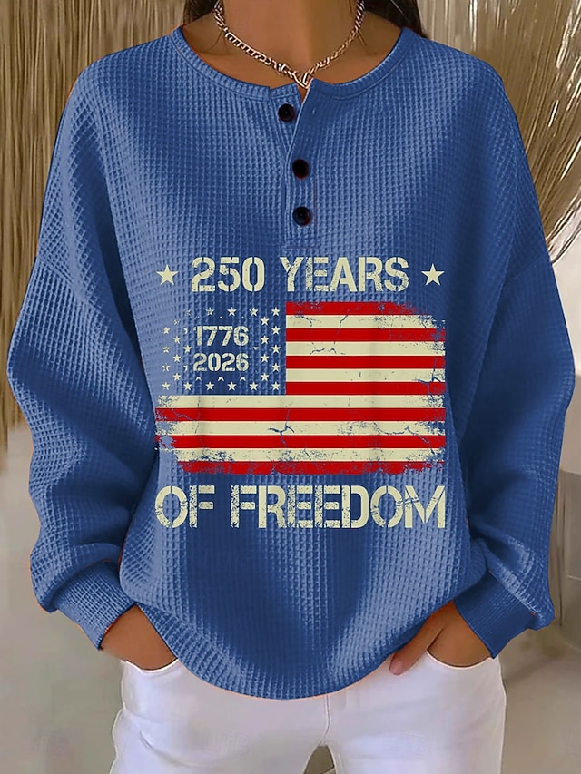 بلوزة نسائية بمناسبة عيد الاستقلال الأمريكي - تصميم حرفي - موضة عصرية وغير رسمية - بأكمام طويلة - قبة دائرية - مطبوعات يومية في الشارع - أزرار #11593603