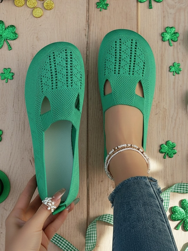 أحذية نسائية خضراء محبوكة سهلة الارتداء - أحذية مريحة وجيدة التهوية مناسبة ليوم القديس باتريك، وللمهرجانات والاستخدام اليومي #13558769