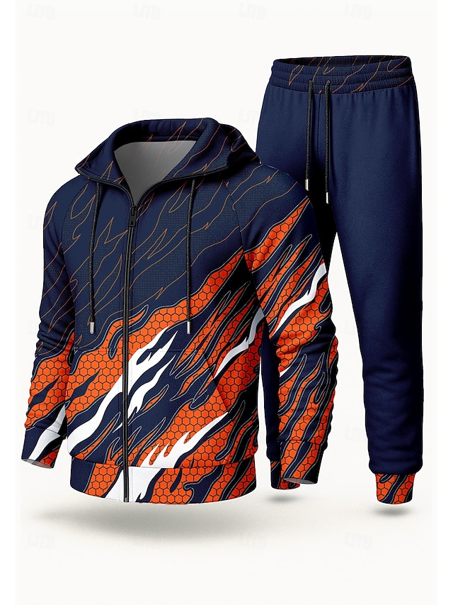 رجالي هوديي بدلة رياضية بدلة رياضية من قطعتين رباط إحزم هندسي أطقم ملابس رياضية الخريف الشتاء برتقالي مهنة الخارج السفر خفة الوزن موضة كم طويل رياضة ألبسة رياضية قابل للبسط عادي #13698503
