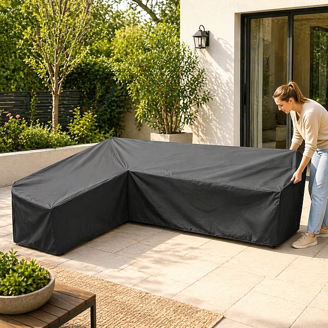 أغطية أثاث الحدائق على شكل حرف L، مقاومة للماء والغبار، مناسبة لأثاث الحدائق الخارجية، لحماية الأرائك والأثاث الخارجي، وواقيات العشب الشتوية (215 × 215 × 87 سم، أسود)#14229073