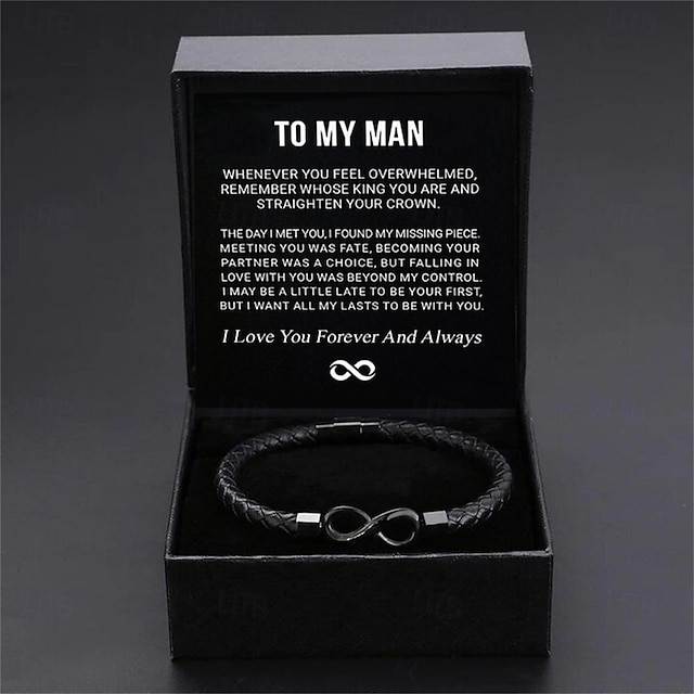 سوار إنفينيتي للرجال، سوار جلدي بمشبك مغناطيسي له، سوار حبل مضفر من الفولاذ المقاوم للصدأ للرجال مع صندوق هدايا بغطاء قابل للطي، هدية عيد الميلاد أو الذكرى السنوية للصديق أو الزوج#15406204