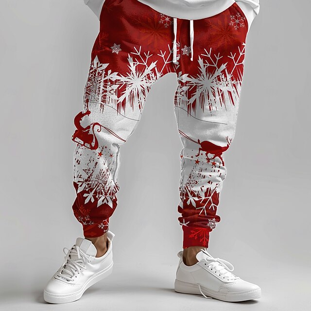 بنطال رياضي رجالي مطبوع عليه مشهد عيد الميلاد من سانتا كلوز إلك، بنطال رياضي كاجوال بجيب بخصر متوسط ورباط وخصر مرن للحفلات المسائية والملابس اليومية للربيع والخريف والشتاء، طباعة ثلاثية الأبعاد #15747949