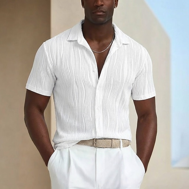 رجالي قميص قميص صيفي قميص غير رسمي زر حتى القميص قميص جاكار أزرق أسود أبيض أخضر كم قصير خطوط / أمواج قبة فضفاض مناسب للبس اليومي قماش الجاكار ملابس موضة كاجوال مريح #16184703