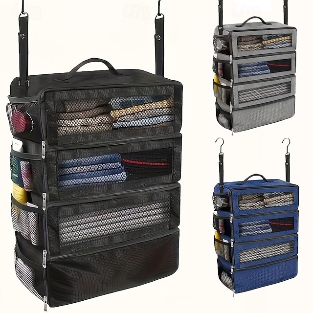 حقيبة تخزين معلقة كبيرة السعة، 4 طبقات، قابلة للطي، متعددة الوظائف، مناسبة لتخزين الملابس، الشماعات، الأمتعة، والملابس الخارجية#18320176