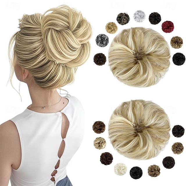قطعتان من وصلات الشعر على شكل كعكة فوضوية، كبيرة ومموجة ومجعدة، مطاطية، على شكل كعكة، كثيفة ورقيقة، على شكل كعكة دونات، وصلات شعر مرفوعة، أشقر رمادي ممزوج بأشقر فاتح#18875687