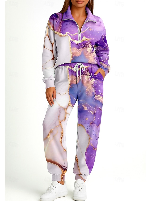 نسائي كنزة بدلة رياضية بدلة رياضية من قطعتين رباط إحزم الهندسة أطقم ملابس رياضية الخريف أرجواني مهنة الخارج السفر خفة الوزن موضة كم طويل رياضة ألبسة رياضية قابل للبسط عادي #19851607