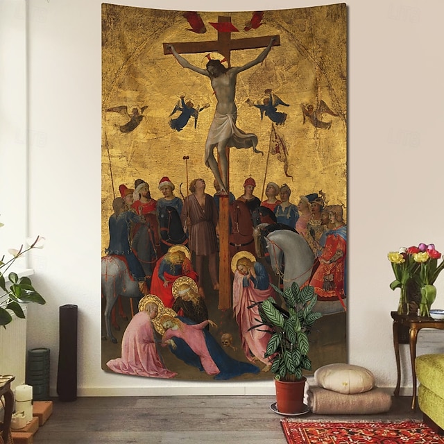 فن الجدارية العصور الوسطى زينة جدارية عصور وسطى زخرفة جداريات كبيرة تصوير خلفية بطانية ستارة زينة غرفة النوم المعيشة#19995085