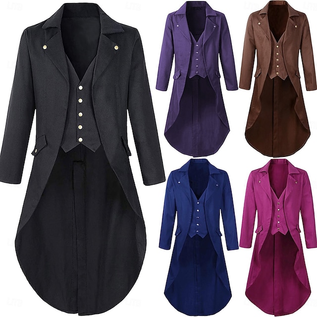 معطف ريترو عتيق بونك وغوثيك للقرون الوسطى معطف توكسيدو مصاص دماء فارس ريتير ملابس فاخرة للرجال عرض ستيمبانك عيد الميلاد حفلة أمسية LARP للبالغين معطف إيبينزر سكروج زي قزم#9498203