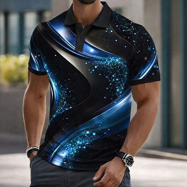 رجالي هندسي قمصان البولو كم قصير قمصان البولو قميص بياقة كاجوال ملابس الرياضة Buttons الصيف الربيع أزرق أرجواني أخضر #9884872