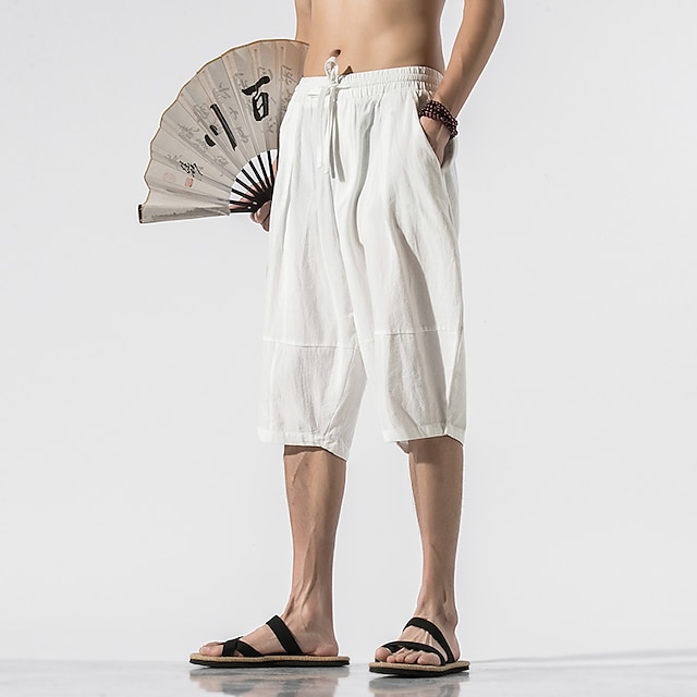 رجالي شورتات شورت من الكتان شورت صيفي شورت الشاطئ بناطيل كابري بقع رباط سهل راحة متنفس طول الساق المنزل مناسب للبس اليومي أساسي النمط الصيني فضفاض صالح أسود أبيض غير مطاطي #8156876