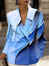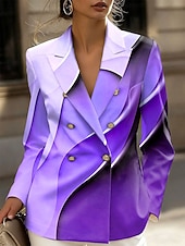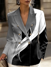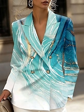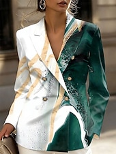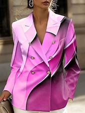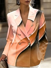 نسائي سترة مريح متنفس Buttons طباعة موضة كاجوال هندسي رسمي المكتب شارع فضفاض صدر مزدوج عادية شق الصدر علوي عادي كم طويل ملابس خارجية وردي بلاشيهغ أزرق أخضر الربيع الخريف #19720829