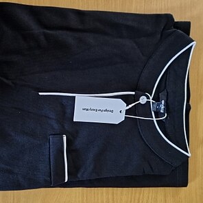 قميص مريح بوزن متوسط. ليس رقيقًا جدًا مثل بعض الآخرين الذين طلبتهم. إنه أكثر مثل نسيج البيكيه. يناسب الحجم الحقيقي وقد غسلتها مرة واحدة وحافظت على لونها الأسود، وهو ما كان يثير قلقي. أفكر في طلب المزيد ولدي شعاري على القميص حتى تكون قمصاني الشخصية.