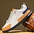 أحذية رياضية رجالية كاجوال برباط، لون أبيض وبني فاتح، ناعمة ومريحة للمشي والسفر والارتداء اليومي والنزهات في المدينة.