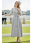 A-الخط طول الساق فستان الحفلة فستان كوكتيل فستان زفاف ضيف فستان أم العروس 3/4 الكم V رقبة أنيق رسمي حفلة رسمية حفلة الزفاف مع شريط و شاح