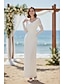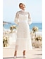 قطعتين A-الخط طول الكعب فستان زفاف ضيف فستان أبيض صغير أنيق يوميا فساتين بيضاء صغيرة كم طويل رقبة عالية مدورة زفاف مع دانتيل
