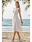 نسائي فستان ميدي فستان شيفت أنيق عطلة ضيف حفل زفاف مناسب للعطلات دانتيل عادي ورد كم طويل V رقبة أبيض