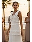 عامودي طول الأرض فستان أبيض فستان كوكتيل فستان أبيض صغير أنيق فساتين بيضاء صغيرة بدون كم رقبة مربعة زفاف مع كشاكش