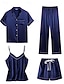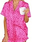 نسائي منامة تنحيف مجموعة بيجامات موضة كاجوال مريح جلد نمر لون سادة زرر بقع مرونة الخصر شورتات مناسب للبس اليومي المنزل عطلة كم قصير Lapel القرمزي الصيف الربيع فضفاض صالح