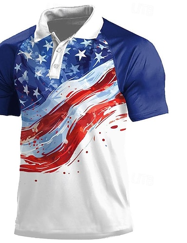 4 يوليو 2026، الذكرى 250 رجالي قدامى المحاربين وطنية قمصان البولو قميص الجولف كم قصير قمصان البولو قميص بياقة كاجوال ملابس الشارع ملابس العطلة ملابس الحفلات طباعة ثلاثية الأبعاد Buttons