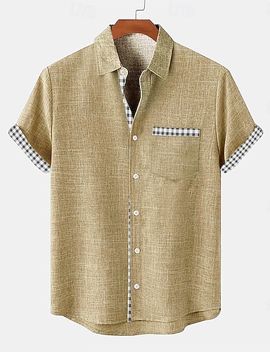 رجالي قميص كتان قميص صيفي ملابس الشاطئ زر حتى القميص لون الصلبة عطلة مناسب للحفلات أزرق أسود أبيض زهري كم قصير طوي الصيف ملابس زر أسفل