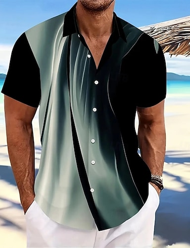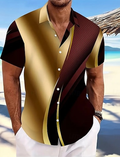 رجالي هندسي التدرج اللوني خط قميص قميص صيفي زر حتى القميص كم قصير عارضة الازياء عطلة مناسب للبس اليومي ملابس الشاطئ الصيف الربيع طوي طباعة ثلاثية الأبعاد قميص يشبه الكتان أصفر أزرق أرجواني أخضر