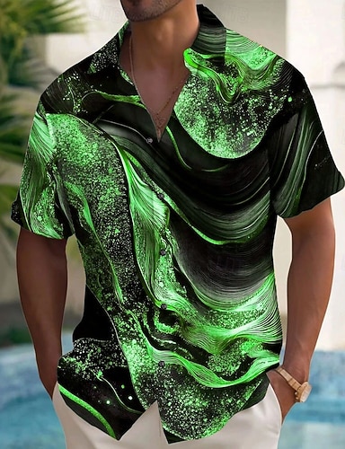 رجالي 3D طباعة نموذج هندسي قميص زر حتى القميص كم قصير موضة أناقة الشارع مصمم مناسب للبس اليومي الأماكن المفتوحة الصيف الربيع طوي طباعة فضي زهري أرجواني ذهبي أخضر