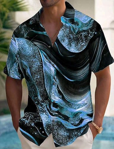 رجالي حجر كريم الفن السائل التجريدي قميص زر حتى القميص كم قصير عارضة الازياء مناسب للبس اليومي الأماكن المفتوحة عطلة الصيف الربيع طوي طباعة ثلاثية الأبعاد قميص يشبه الكتان أزرق أرجواني أخضر