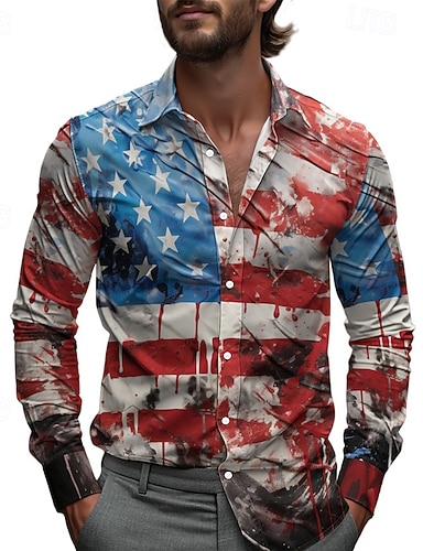 رجالي علم الولايات المتحدة الأمريكية قمصان العمل القميص الغربي قميص البضائع كم طويل كاجوال تكتيكي الرياضة & في الخارج مناسب للخارج الشتاء ربيع & الصيف طوي طباعة أخضر داكن أزرق كاكي