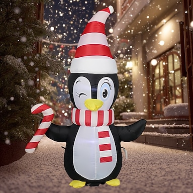زينة عيد الميلاد المضادة للرياح بحجم 1.2م، أضواء LED متدلية، زينة البطريق داخل وخارج حدود الحديقة والعشب، زينة للمنزل