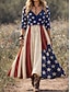 American Independence Day Women's Midi Dress Casual Dress Party Casual Boho Date Regular Fit Graphic Flag Long Sleeve V Neck Blue Summer Spring