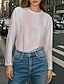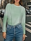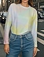 Women's T shirt Long Sleeve Crew Neck Long Sleeve Tunic Ombre Graphic Casual Regular Tops Daily Print Khaki Spring Fall Prefall