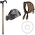 Old Lady Costume Accessories Kit - Black Bun Wig, Leopard Print Head Scarf, Pearl Necklace Bracelet Set, Walking Cane - Perfect for 100 Days of School & Grandma Dress Up