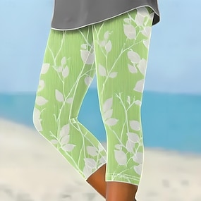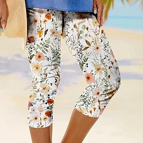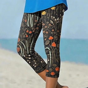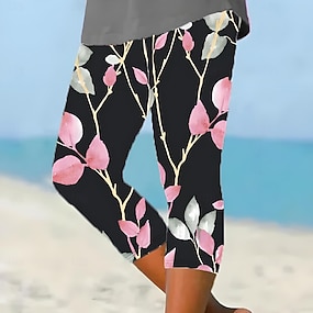 Women's Capri Pants Leggings Vacation Fashion Hawaiian Calf-Length Mid Waist Floral Graphic Printing Print Comfort Soft Breathable Stretchy Casual Daily Vacation Black Summer Spring Slim Fit