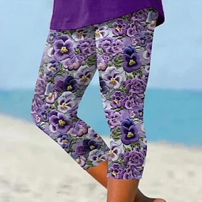 Women's Leggings Capri Pants 3D Print High Elasticity Vacation Vintage Fashion Calf-Length High Waist Floral Graphic Printing Breathable Soft Stretchy Formal Vacation Office Buff Pink Blue Amethyst