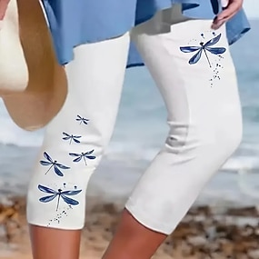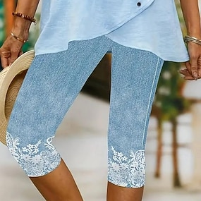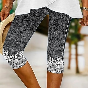 Women's Capri Pants Leggings Vacation Basic Athletic Calf-Length Medium Waist Graphic Abstract Comfort Stretchy Vacation Formal Street Blue Navy Black Summer Spring Slim Fit
