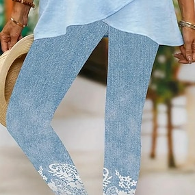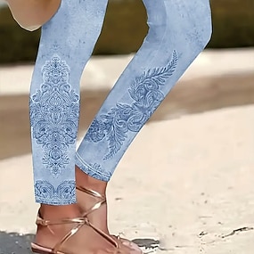 Women's Leggings Vacation Vintage Fashion Ankle-Length High Waist Graphic Paisley Flower / Floral Printing Soft Breathable Stretchy Daily Outdoor Vacation Light Sky Blue Spring Fall Winter Slim Fit