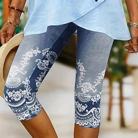 Women's Capri Pants Leggings Vacation Vintage Fashion Calf-Length Mid Waist Floral Graphic Printing Print Comfort Soft Breathable Stretchy Casual Daily Vacation Navy Light Blue Summer Spring Slim Fit