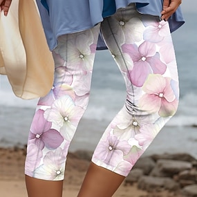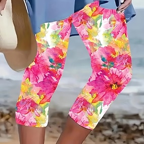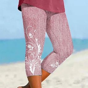 Women's Capri Pants Leggings Vacation Vintage Fashion Calf-Length Mid Waist Floral Graphic 3D Print Printing Comfort Soft Breathable Stretchy Casual Daily Vacation Light Pink Summer Spring Regular Fit