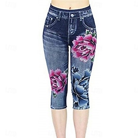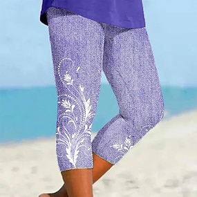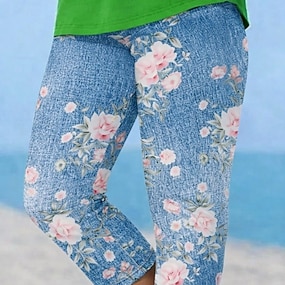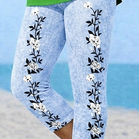 Women's Capri Pants Leggings Vacation Vintage Fashion Calf-Length Mid Waist Floral Graphic 3D Print Printing Soft Breathable Micro-elastic Casual Daily Vacation Pinky Light Sky Blue Deep Blue Summer