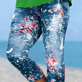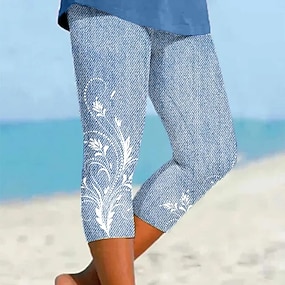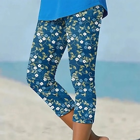 Women's Capri Pants Leggings Vacation Fashion Hawaiian Calf-Length Mid Waist Floral Graphic Printing Comfort Soft Breathable Stretchy Casual Daily Vacation Blue Summer Spring Regular Fit