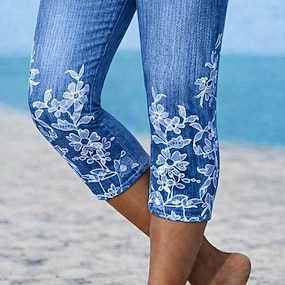 Women's Leggings Capri Pants 3D Print Chinos Leggings Vacation Vintage Casual Calf-Length High Waist Floral Printing Comfy Soft Comfortable Stretchy Outdoor Vacation Street Blue Summer Slim Fit