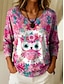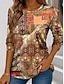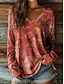Women's T shirt Long Sleeve Floral 3D Casual Long Sleeve V Neck Notched Neck Regular Tops Daily 3D Print Print Khaki Spring Fall Prefall