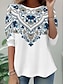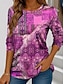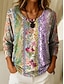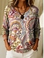 Women's T Shirt Henley Shirt Floral Vintage Ethnic Daily Basic 3/4 Length Sleeve V Neck Regular Tops Holiday Weekend Buttons Print Red Purple Green Khaki Gray Fall & Winter