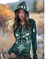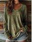 Women's T shirt Long Sleeve V Neck Long Sleeve Graphic Casual Vintage Print Regular Tops Vacation Weekend Army Green Gray Spring Fall Prefall