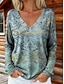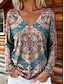 Women's Boho T-shirt Graphic Geometric Elegant Bohemia Vintage Long Sleeve V Neck Regular Tops Daily Weekend 3D Print Blue Red Purple Green Summer Spring Fall Winter